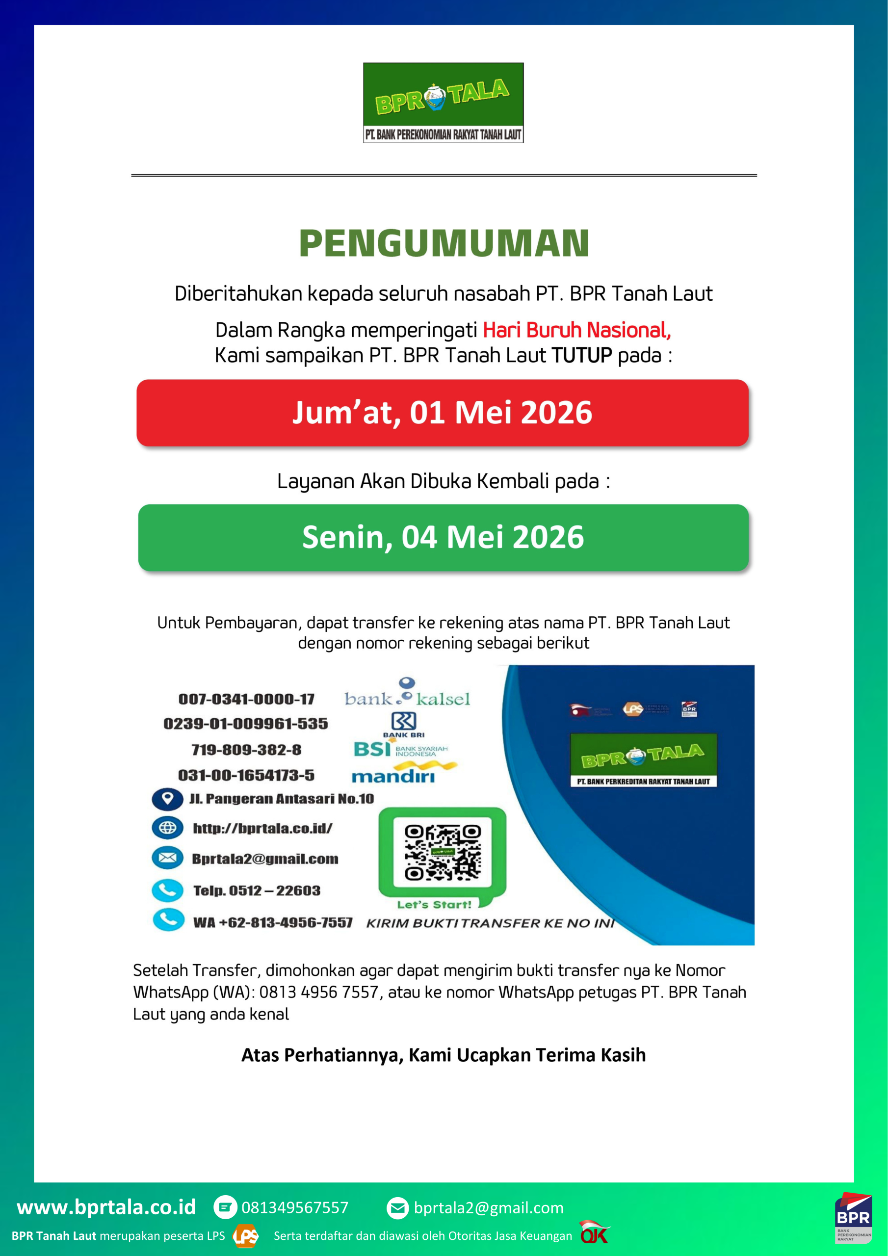 Pengumuman Libur Hari Buruh Nasional